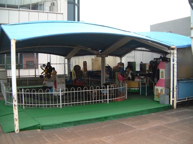 見事なまでに“うらぶれ”ていましたね…。幼少の頃,親に連れられて行った記憶がかすかにあるけど,ある“意味”何も変わっていませんでした(遊具とか,ほとんど昔のまんま)。これじゃ,誰もお客さんこないよー,って感じでしたが,さすがに最終日だけあって,物好きな“大兄”がカメラ片手にチラホラ見受けられようで…。でも,こういったデパート屋上の遊具施設って,味があるというか,ゲームセンターにはない温かみが感じられるから,できることなら残して欲しいですね。