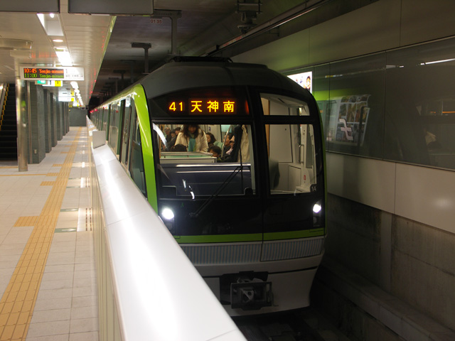実家に帰省したついでに,今月3日に開通したばかりの福岡市地下鉄【リンク】七隈線に乗ってみました。インプレッション…キッツいカーブをよく曲がるなぁ,と(^ ^;)。福岡はこれまでのフル規格の地下鉄線が2系統(空港線・貝塚線)走っていたのだけど,今度開通した七隈線は,従来のとは異なるミニ規格なんですね(大江戸線や鶴見緑地線と同じタイプ)。だから,Rのきついカーブも難なく曲がれるのです。ただ,車体自体が小さいものだから,中吊り広告をつけるスペースすらなく,どうしても圧迫感がなるのは否めないかもね。あとは…乗り継ぎ駅となる天神南駅から天神駅までが,遠い遠い! いくら120分の乗り継ぎタイムを設定しているからといっても,通り抜けルートとなる天神地下街で買い物して欲しいがためにワザと駅をくっつけなかったと言われても否定できないだろうなぁー。どちらにしても,将来,空港線・貝塚線が交叉する中洲川端駅まで延伸するか,途中の薬院駅から博多駅方面に伸ばさないと,公共交通機関としてのシナジー効果は高まらないだろうね。素性は比較的よさそうなルートなので,今後の発展に期待です。