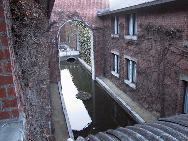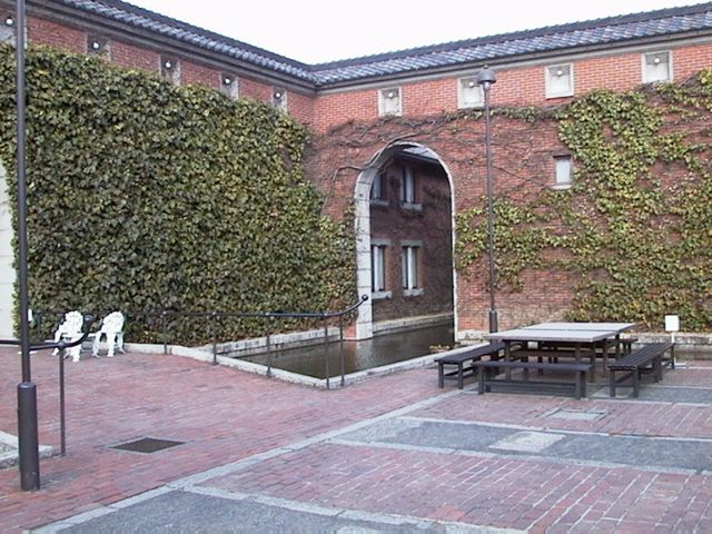 蔦に囲まれた赤レンガの広場(スクエア)。