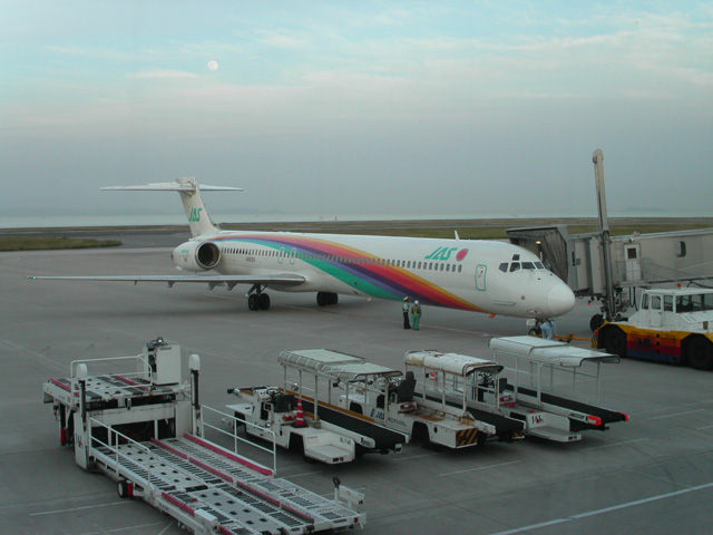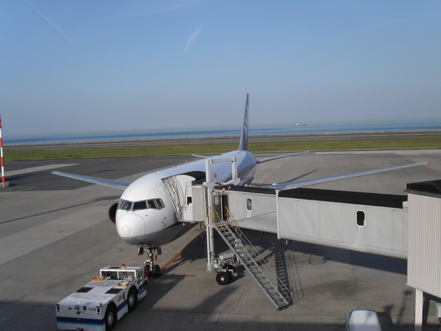 大分空港側の写真。横滑りしながら,S字に陸上を進みます。
