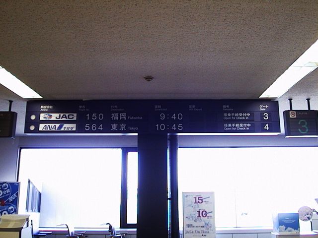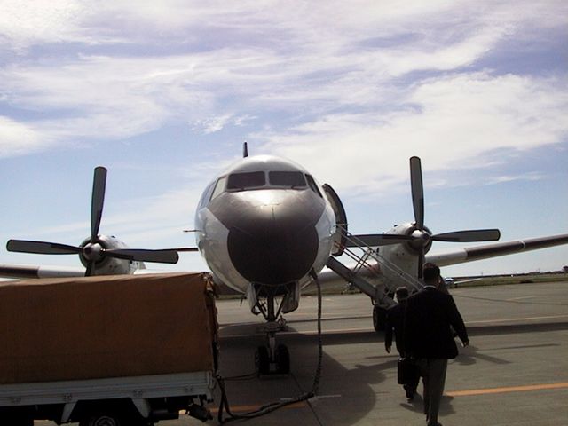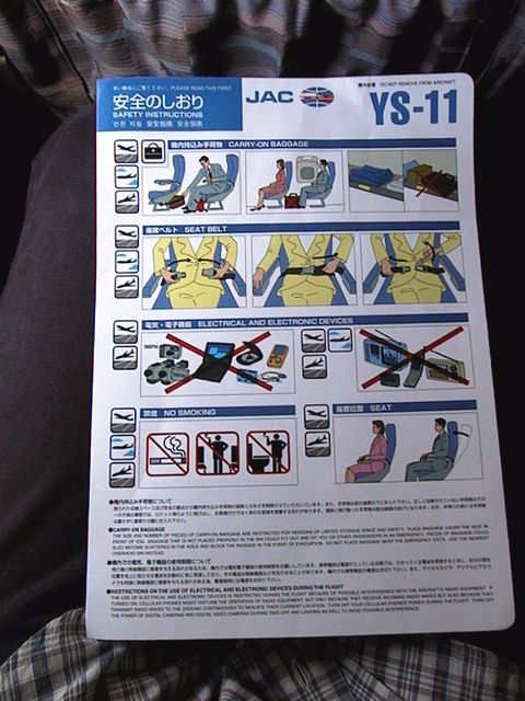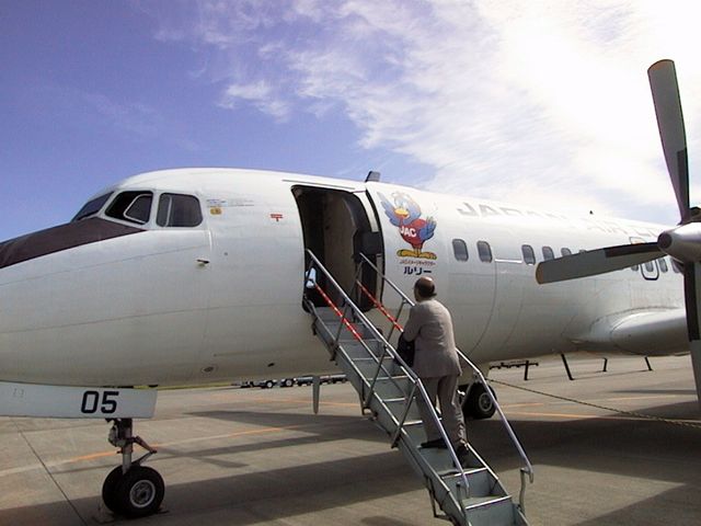 昨年9月に引き続き,もう一度NAMC YS-11に乗る機会を得ました。先日,NHKのプロジェクトXという番組で2週に渡りYS-11の開発に関する特集がされていたこともあって,また乗ってみたいと思ってたんですね〜。幸い(?!)なことに,福岡−高知間はジェット機が飛んでいない(※2000年9月現在)ため,選択肢もYSかSAABまたは前日に搭乗したJetstreamしかありませんでした。高知から福岡に行く客が少ないからなのか,私が乗った便はガラ空きで,20人ぐらいしかいなかった気がします。そうそう,私がスカイメイトを使えるのも,多分これが最後となるでしょう。