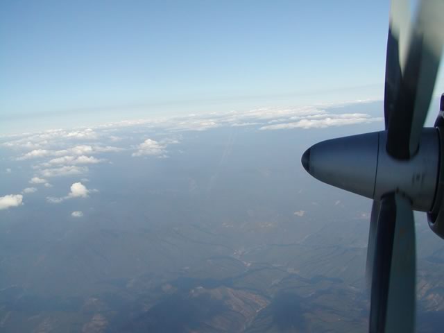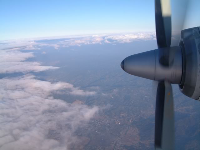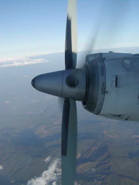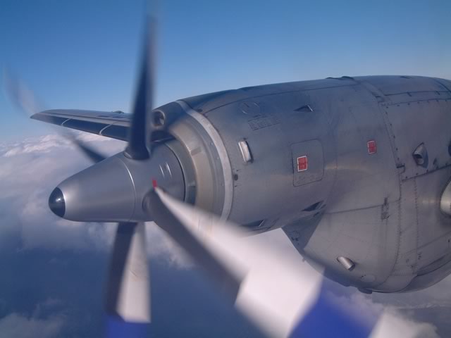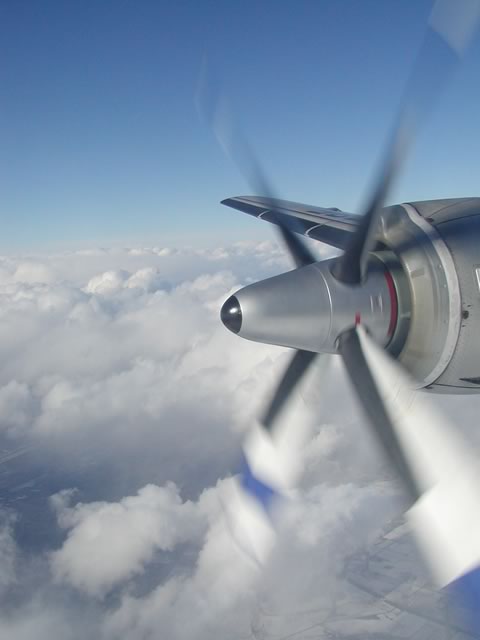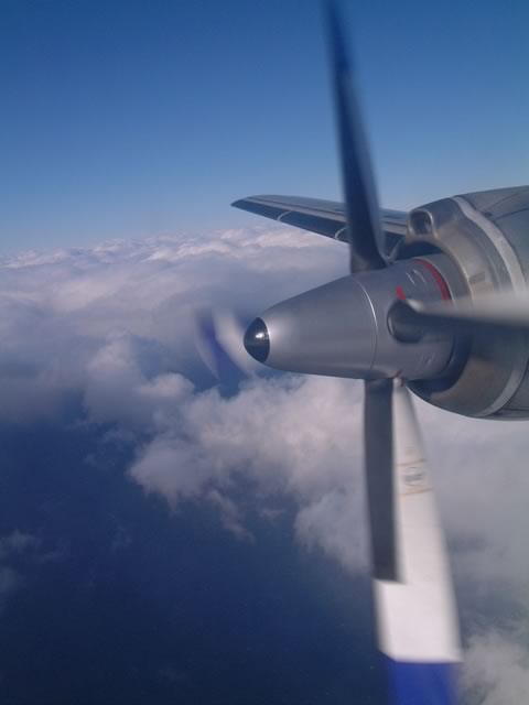 3Dというプロペラブレード真横の席でした(もう一つ前の席だったら,もっときれいにプロペラが収まったんだけどね)。