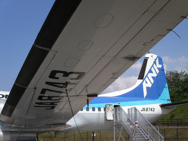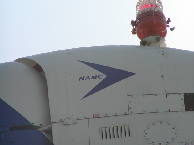 日本航空機製造(NAMC)のロゴ。赤色ランプは,ここに来てから取り付けたのかな。