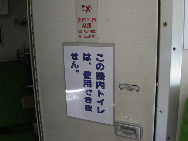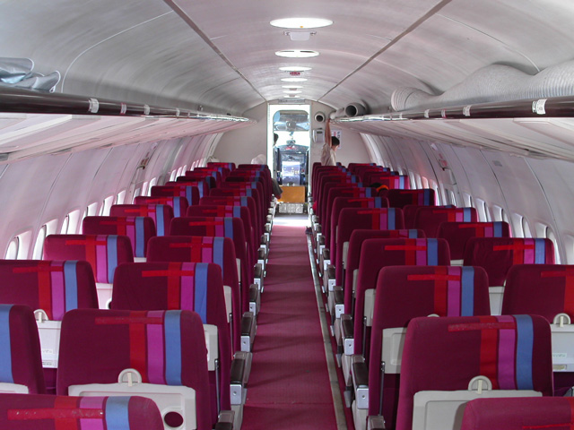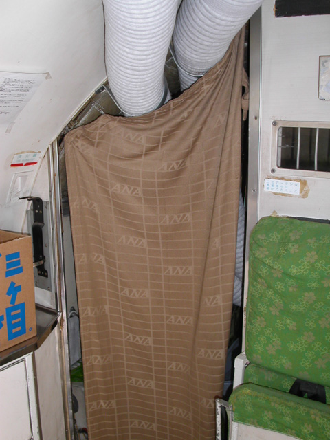 機内も一般公開されていたので,覗いてみました。カーテンの奥は貨物室のようですが,入れないようになっています。