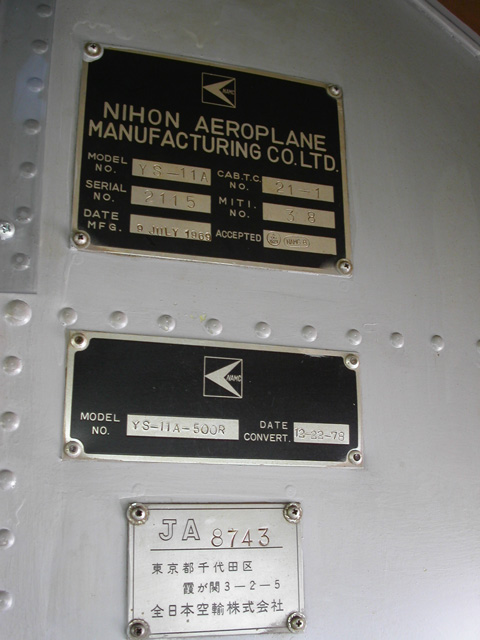 こんなところ(機長席の後ろ)に製造プレートが取り付けられていたんだね。