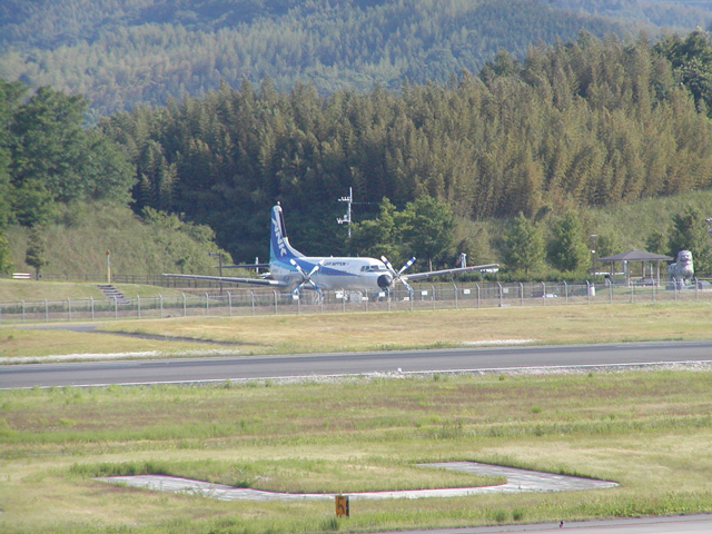空港を見つめる“こどもの国”のYS。まるで,守り神だね。