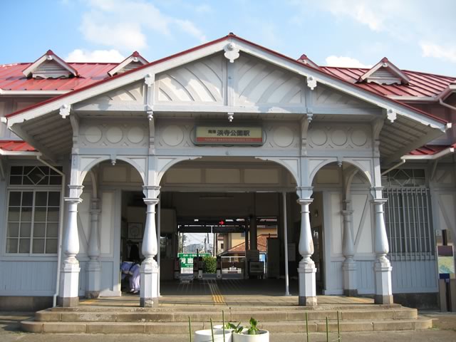 浜寺駅前駅から100mほど離れたところにある南海浜寺公園駅。国の登録有形文化財に登録されているそうで。