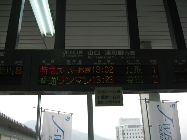 本当は下関〜益田間も山陰本線回りにしたかったのだけど,閑散路線につき,仕方なく新山口まで新幹線で移動。所要時間37分とは,新幹線ってホンマに速いわ(笑)。