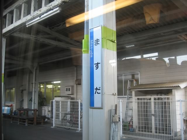 益田から息を吹き返したように快走し始めます。ちなみに,写真に写っているのは,停車駅の三保三隅駅。みどりの窓口もない閑散駅なのに,どうして止まるのかしら(^ ^;)。
