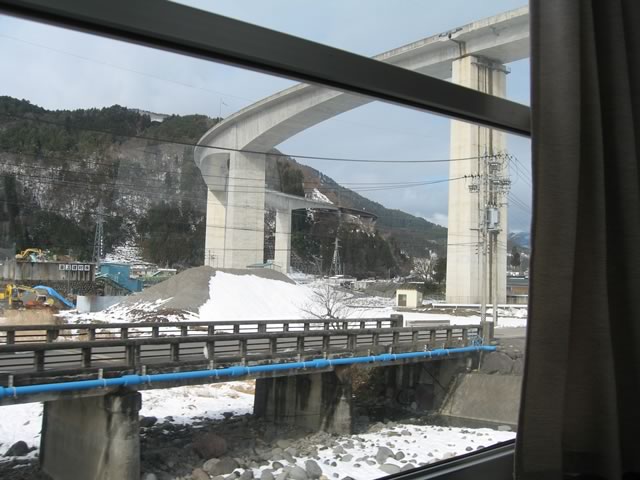 立派な高速道路(?)が,線路の上空を突き抜ける…。