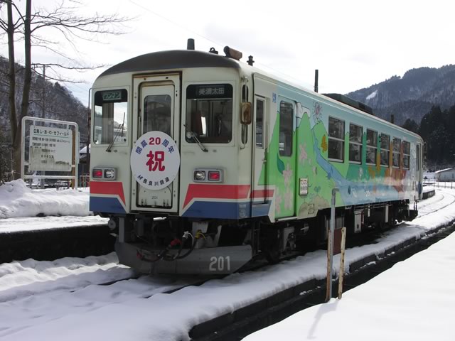 前回長良川鉄道を訪れたときは,美濃白鳥駅からバスに乗り換え九頭竜線に抜けたのだけど,そのバスも2002年になくなってしまいました。また,関から岐阜市内までを結んでいた名鉄美濃町線も2005年に廃止され,本当のどん詰まりになってしまったのですね…>長良川鉄道。正直,明るい話題はほとんどないけれど,美濃太田からしばらくはそれなりにお客も乗っていたので,潜在的な需要はあるのかもしれません(特に冬場はね)。険しいばかりの道ではあるものの,何とか再生への糸口を見つけてほしいものです。