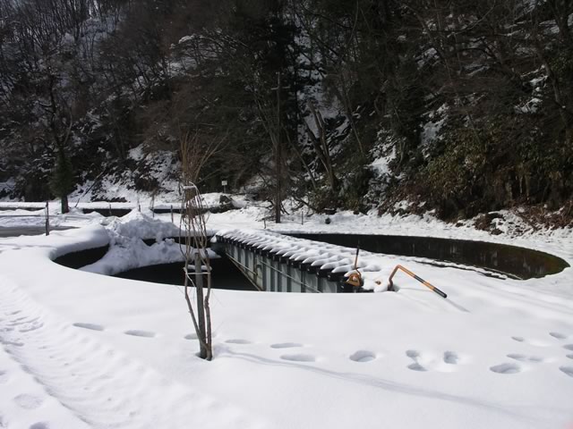 この冬は暖冬といえども,奥深くなるにつれ徐々に雪が見えてきました。
