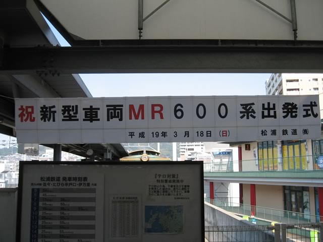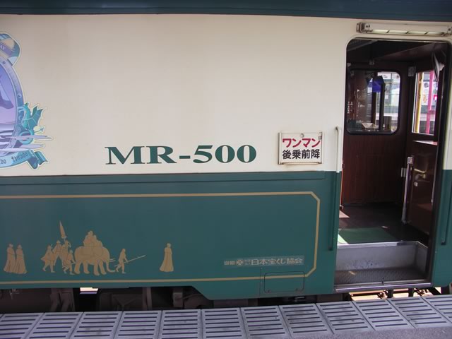 がーん,新車ことMR-600型の運行開始は明日なのね。でも,運がいいことに一両しかない特別列車(MR-500型)ことレトロン号が停車していました。