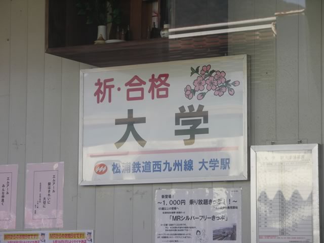 大学駅。いわゆる縁起担ぎの駅として,今福駅〜大学駅までの乗車券などが売られていたりしますね。
