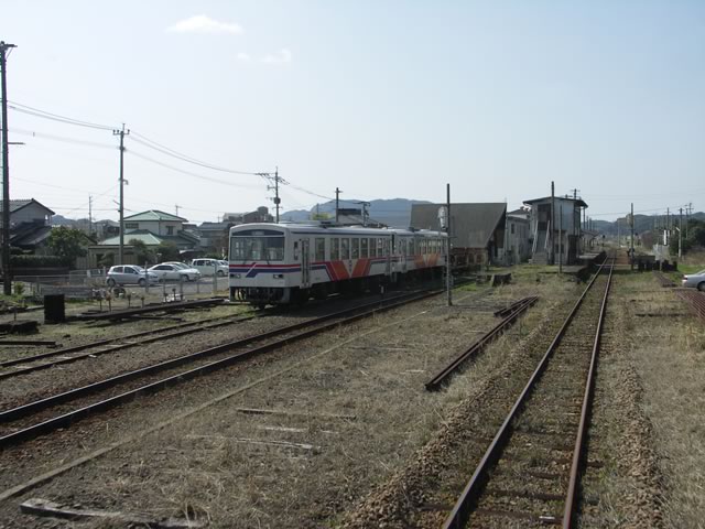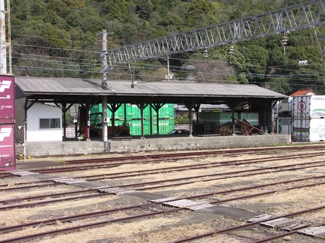 有田駅に到着。コンテナが置かれていたので,鉄道貨物の取り扱いもあるのかと思いきや,オフレールステーションと言い,トラック輸送だけが行われるのだそうで。