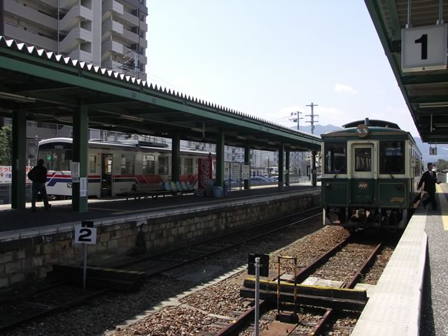 佐世保発列車の終点,伊万里駅。2002年の駅舎建て替えまでは,JR線とつながっていたそうだけど,今は道を隔てて駅共々分かれてしまいました。
