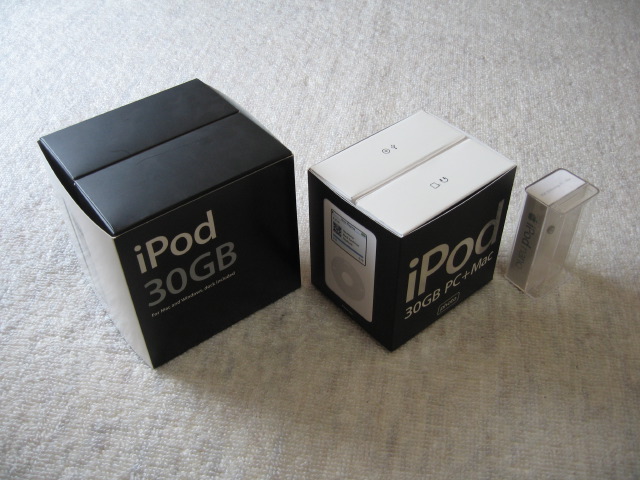 ファイルメーカー選手権入選の副賞としてiPod nano(第2世代)をいただきました。これまでiPodは4台使ってきたのだけど,1台目(初代)はFirewireポートの金属疲労(?)で破損,2台目(第3世代)は滑って床にたたきつけてハードディスクがおじゃんに,そして3台目(第4世代)を使っていると突然ウンともスンとも言わなくなって同等品と交換といった具合にコロコロ変わってきたンですな。で,5台目にしてよーやくフラッシュメモリタイプのiPodがやってきました。iPod nanoのレビューはいろんなWebサイトに掲載されているので,ココでは外箱の比較でもしてみましょうか(笑)。あいにく初代の箱は実家に置いてきたので,2台目・3台目と今回のnanoの箱を並べて撮った次第デス。こうやってみると,nanoは本体だけでなくパッケージ自体も劇的に小さくなっていますね。おそらく,CDを付属しなくなったことがパッケージの小型化に寄与しているんじゃないかな〜。他にも,Dockやケースが標準で付かなくなるといった具合に,ケチにコストを削減していっていますねー。でも,次のモデルではUSBケーブルすらオプションになったりしたらイヤだなぁ(さすがにそれはないだろうけど^ ^;)。