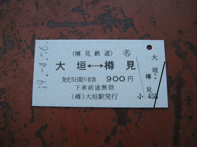 いまどき珍しい硬券。桜ダイヤの時期は,一部の駅で途中下車が可能になります。