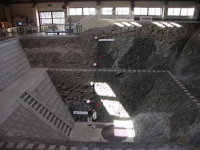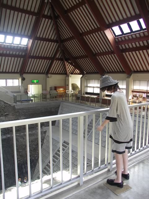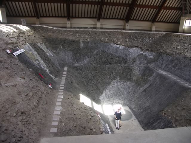 件の建物は“根尾谷地震断層観察館”でした。で,中はこんな感じ。地下をくりぬいて,断層の様子が観察できるようになっています。ちなみに,写真に写っている人影はマネキンなのであしからず(^ ^;)。