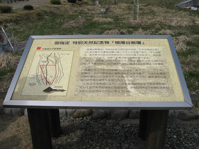 いまから100年以上前に大地震があり,この一帯(根尾谷)は最大6メートルも隆起したそうです。写真内の“盛り上がり”は土手ではなく,断層の跡なのですね。