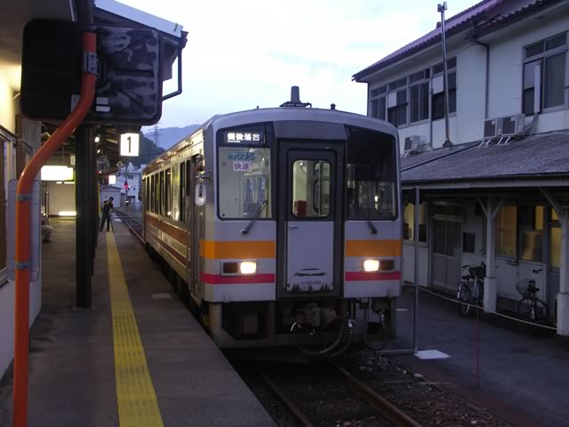 新見−備後落合間は1日3本しか走らない超過疎路線なのに,そのうち1本が朝5時台なんて誰も乗(り|られ)ませんな〜。もうちょっと乗客のことを考えてくれたダイヤでもいいのにねぇ。