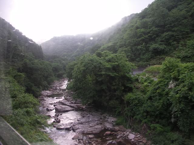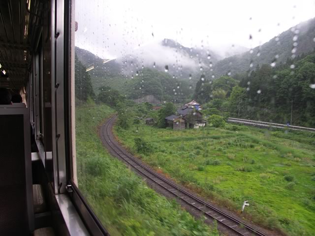 三次方面へ進むにつれ段々晴れてきました。しかし,芸備線は速度制限が多すぎっ。いたるどころ雨天15km制限ってどーなのよ(^ ^;)。これじゃ高速道路と勝負にならないなぁ。