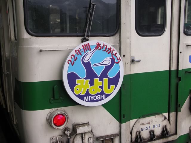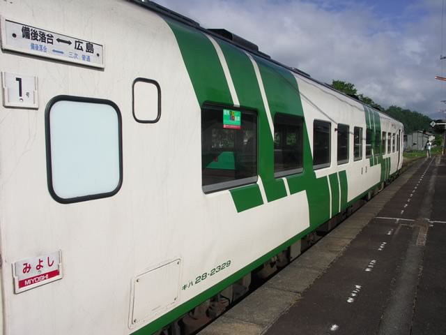 いまや数えるほどしか残っていないJR急行列車の中で1日3本“も”走っている急行みよし(広島−三次)が6月末で廃止されることになりました。7月からは快速化され急行料金が不要になるため,地元の人にとってはむしろ使いやすくなるのかもしれませんが,芸備線が優等列車の走らないただのローカル線に成り下がってしまったとも言えるかもしれませんね…。キハ58系気動車が急行として運用される最後の砦(?)でもあるため,惜別の意味も込めて週末に乗りに行ってきました。