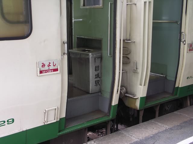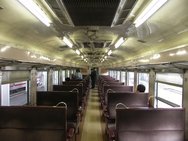 車内はもぉ渋すぎて涙が出ます(^ ^)。国鉄仕様の最後の喫煙車だな,きっと。おまけに「但し急行列車は喫煙できます。」のステッカーが泣かせる。ということは,三次−備後落合間は禁煙だよ〜(もっとも僕はタバコは吸わないケド)。