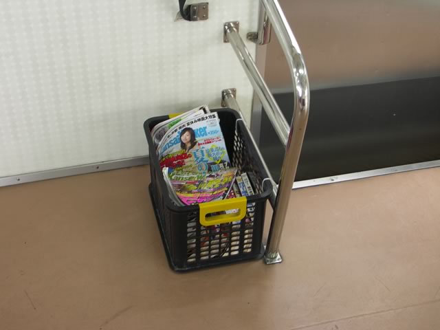 エアコンの送風口に風鈴が付けられており,車内は涼しげな音に満たされていました。片道わずか13分だけど,雑誌を自由に読めるようにしているのも気が利いているね。