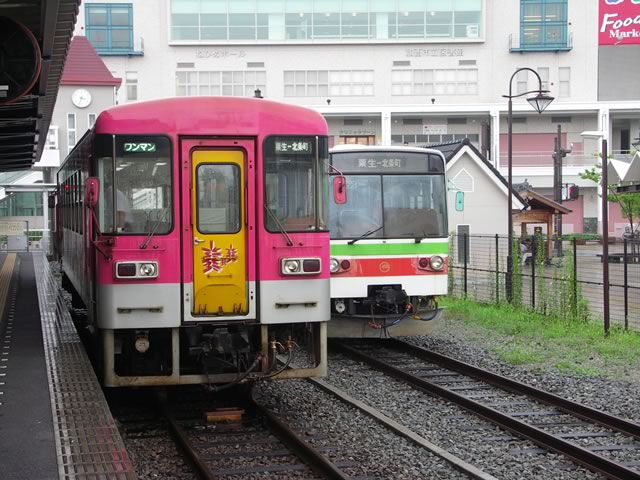 フラワ1985形(左)とフラワ2000形(右)。“フラワ”とは兵庫県立フラワーセンターに因むらしいけど,北条線沿線からは離れているのだそうで。