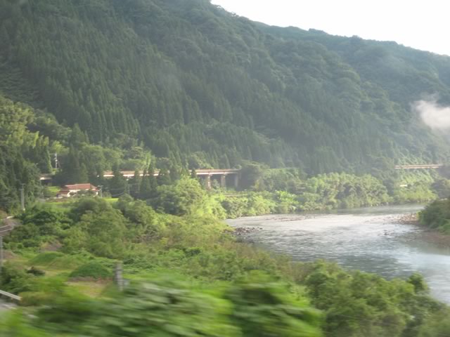 このあたりは,開業時期が新しいこともあって,山を躊躇せずにトンネルで貫いていますね。最短ルートで走るために,田舎には不釣り合いな高架橋もあるし…。写真は,ヘンテコ駅として名高い宇都井駅(ホームまで116段の階段を上らないといけないバリアフリーとはほど遠い駅^ ^;)周辺の風景です。