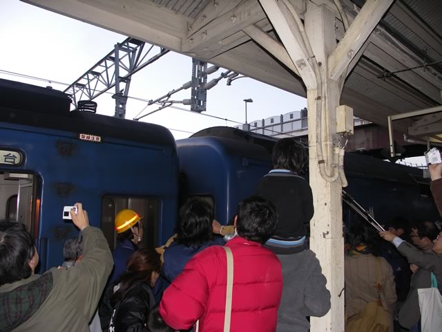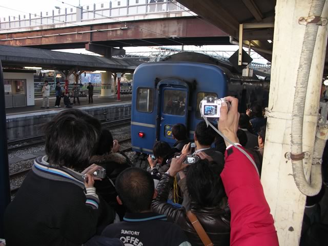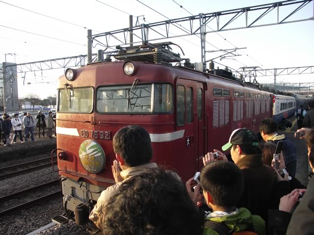 あかつき号を車両基地へ回送するための電気機関車がやってきました。それにしてもギャラリーの多いこと(^ ^;)。新聞記事によれば,早朝の鳥栖駅に300人ほど集まったのだとか…。