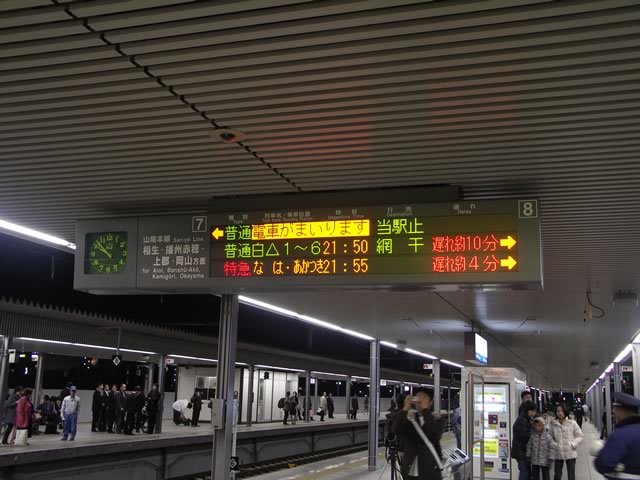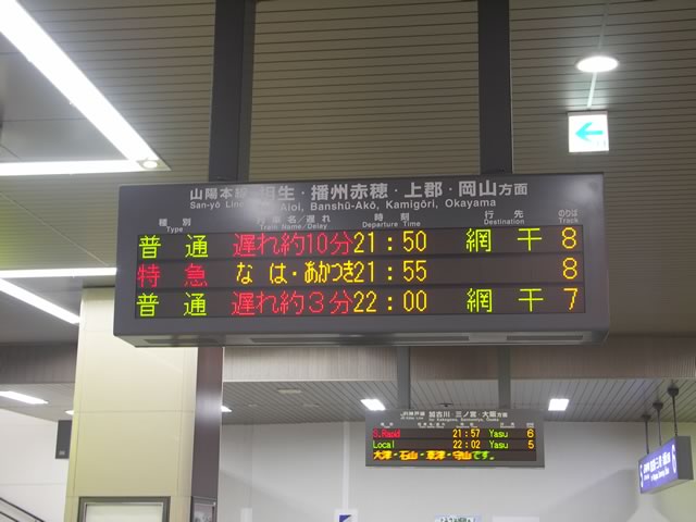 3月14日の姫路駅。もうこの案内板に「なは・あかつき」の文字を見ることはない。
