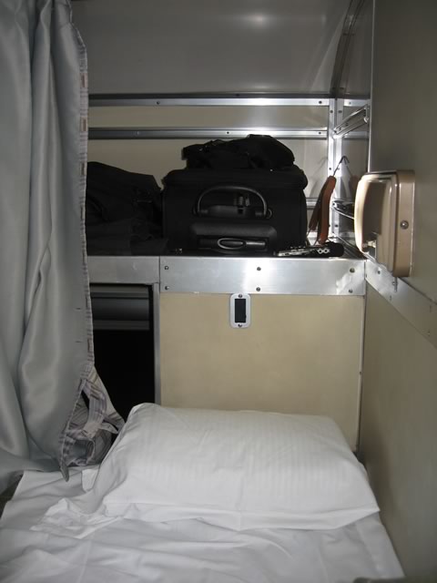 寝台はといえば久しぶりの上段。上は荷物置きがあるので便利なのだけど,ハシゴをイチイチ上らないといけないのが面倒だね。