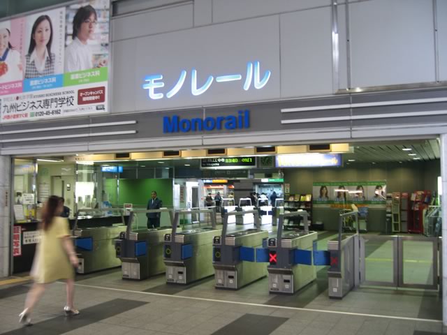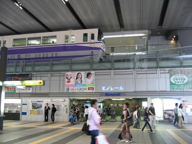 香椎駅まで戻り,鹿児島本線で小倉駅まで移動後,今度は北九州モノレールに乗車。駅構内までモノレールが乗り入れるのがなんだか近未来チックですな。