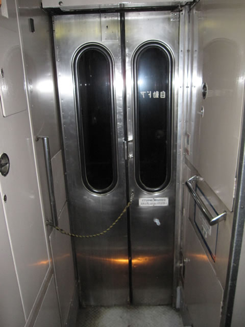 車両末端にて。客車なので,最後部まで行くと後方展望が楽しめます。