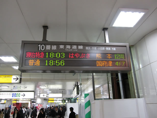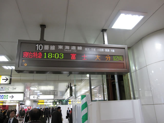 18時03分東京駅発下り寝台特急はやぶさ・富士号熊本・大分行。途中の門司駅まで連結して走ります。