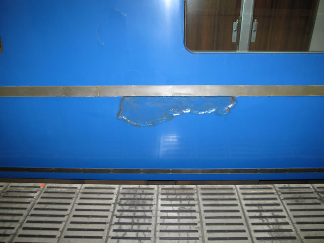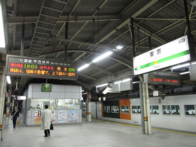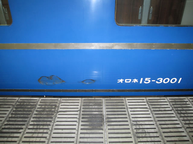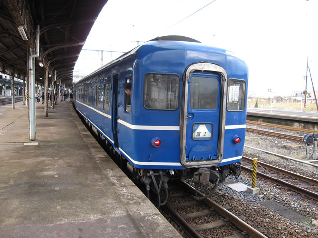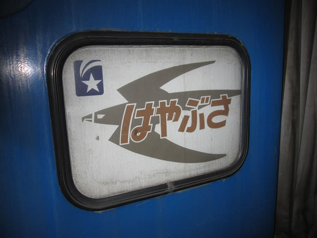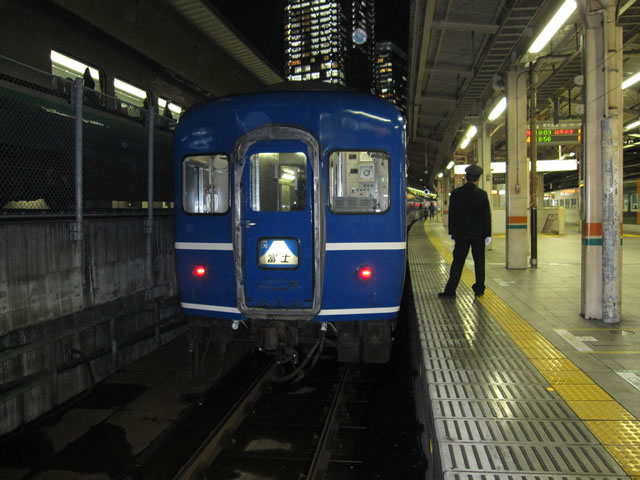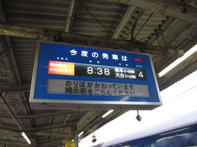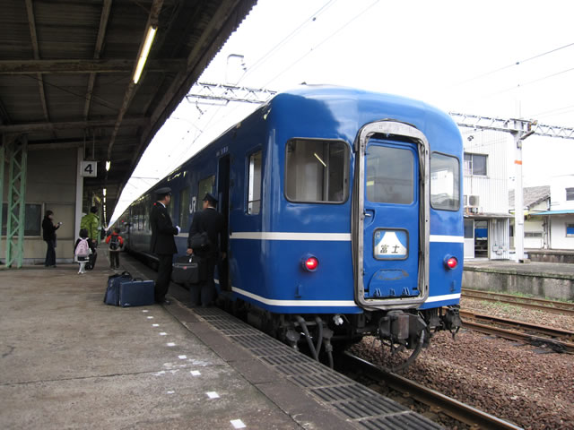 発車時刻を待つはやぶさ・富士号。車両も痛みが目立ちますね…。