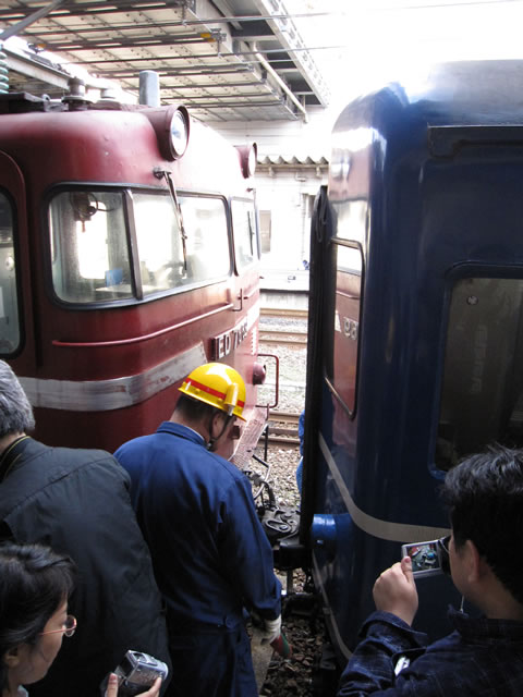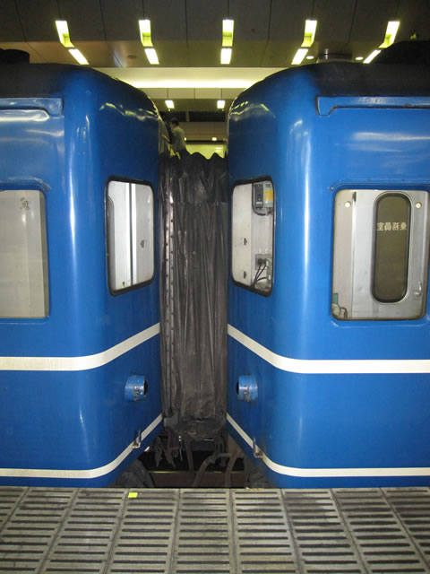 はやぶさ・富士号の連結部にて。ヘッドマークがよく見渡せます。