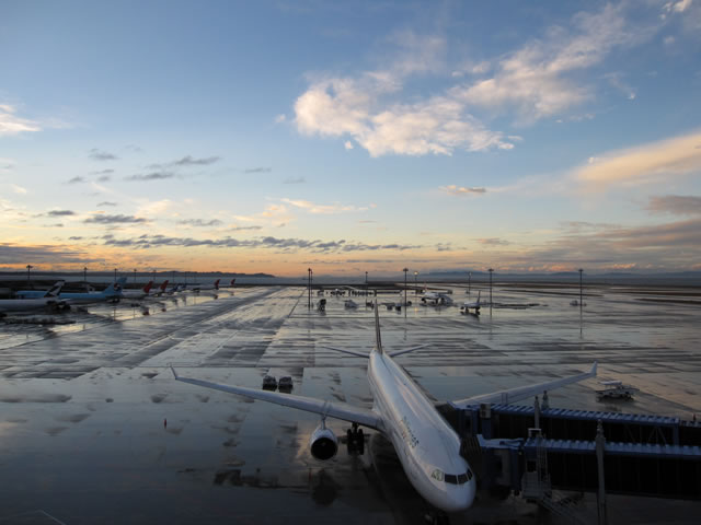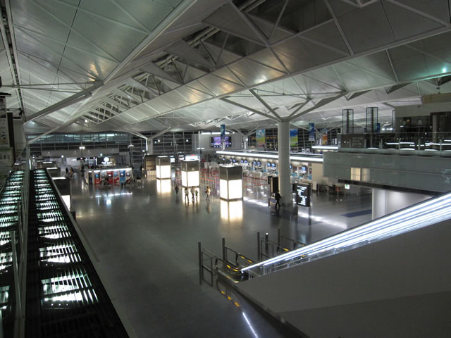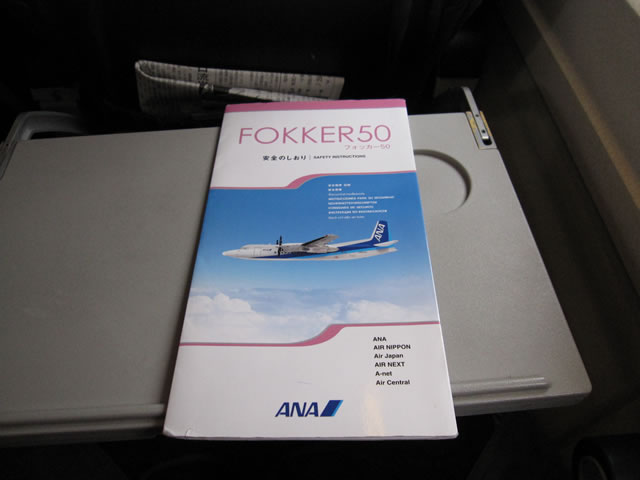 フォッカー50はネットで予約した時点では座席指定ができなかったため,朝6時前にセントレアのカウンターに出向いて搭乗手続きをしてきました。いやー,早く着きすぎて空港内には誰もいませんな〜(笑)。ちなみに前日の夜遅くに空港そばのホテルに泊まったのだけど,やたらと風が強くて折りたたみ傘が折れてしまいました…。