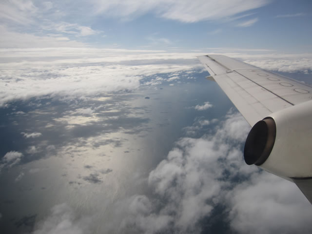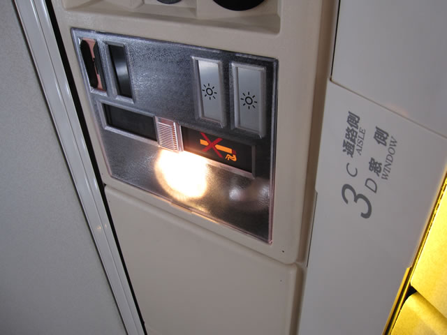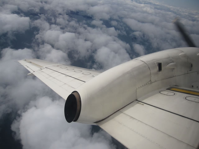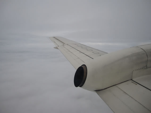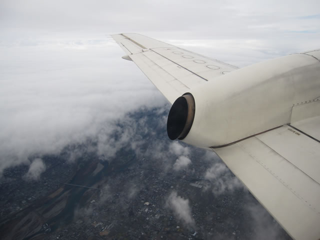 右側前方の3Dという席に座ったのだけど,プロペラはさらに前側についていました。ファインダーにプロペラを収めようと思ったけど,この角度からだと無理ですな。