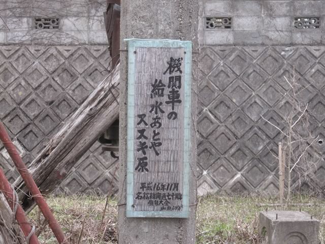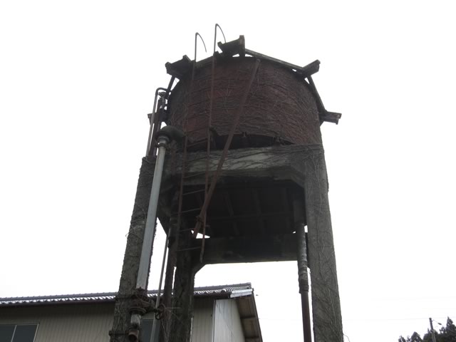 線路末端の少し先にSLが走っていた頃に使われていた給水塔が見えます。取り壊されずによく残っているなぁ,と。