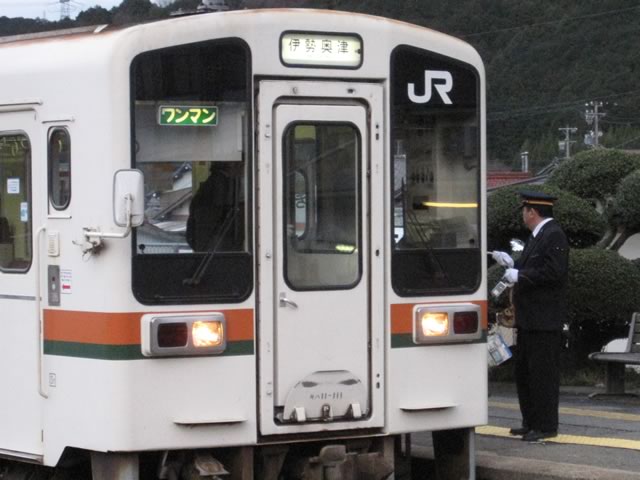 家城〜伊勢奥津間はJR東海では唯一スタフ閉塞を行っている区間のため,キャリアを交換している様子が見えました。