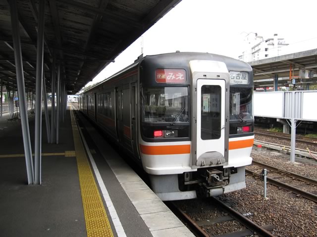鳥羽駅から松阪駅までは快速みえ号に乗車。津〜河原田間は伊勢鉄道の路線になるため,青春18きっぷで四日市・名古屋方面まで乗車する場合は別料金が必要とのアナウンスが何回も流れていました。
