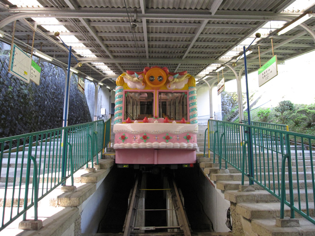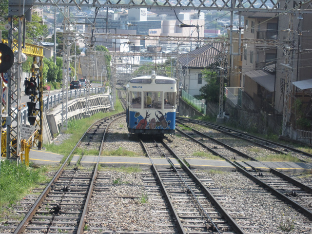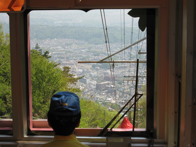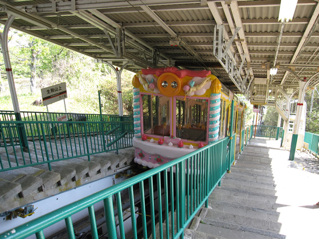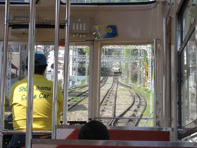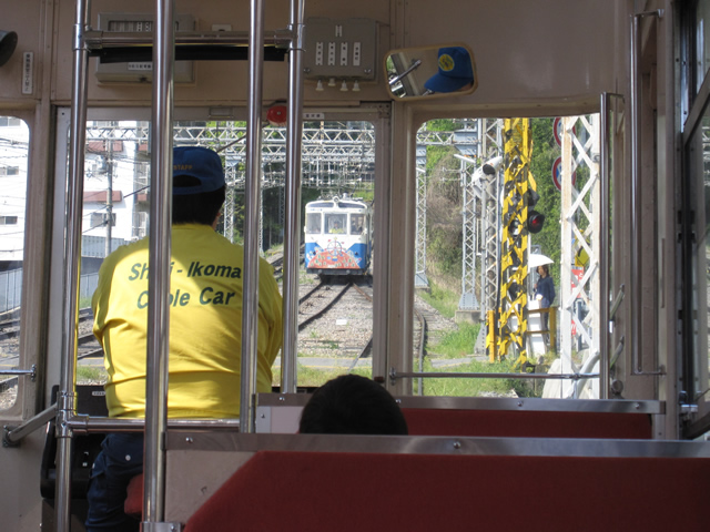 けいはんな線で生駒駅まで戻り,お次は生駒鋼索線(通称生駒ケーブル)。犬の「ブル」と猫の「ミケ」という車両が有名みたいだけど,私が乗ったときは別のタイプでした。