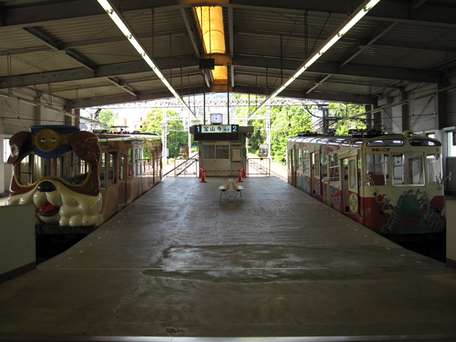 宝山寺駅で山上線に乗り換え。こちらは中間駅が2つもあるのですねー。