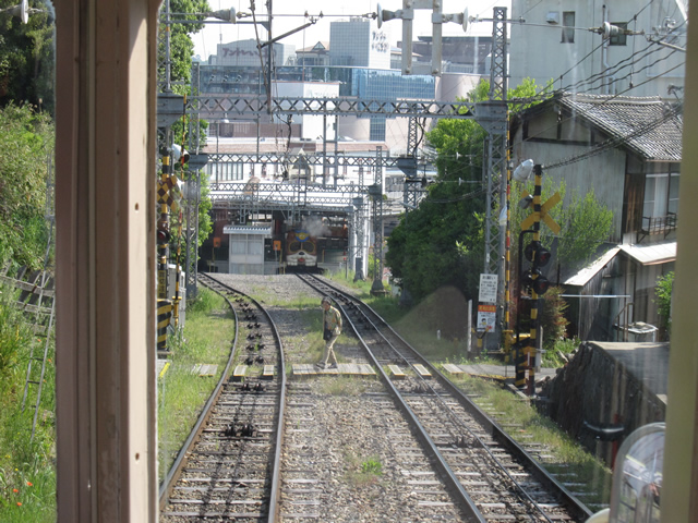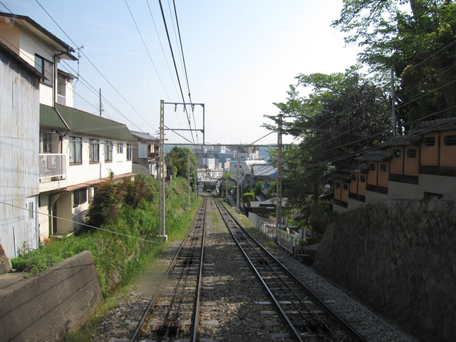 ケーブル線にも関わらず途中踏切があるのが特徴的。