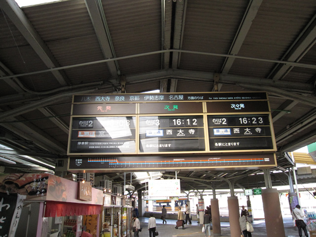 古市駅→南大阪線→尺土駅→御所線往復→南大阪線→橿原神宮前駅といったルートで移動。南大阪線(及び周辺支線)と大阪線や橿原線とは軌間が異なるので京都・名古屋方面に行く場合は,橿原神宮前駅で必ず乗り換える必要があります。