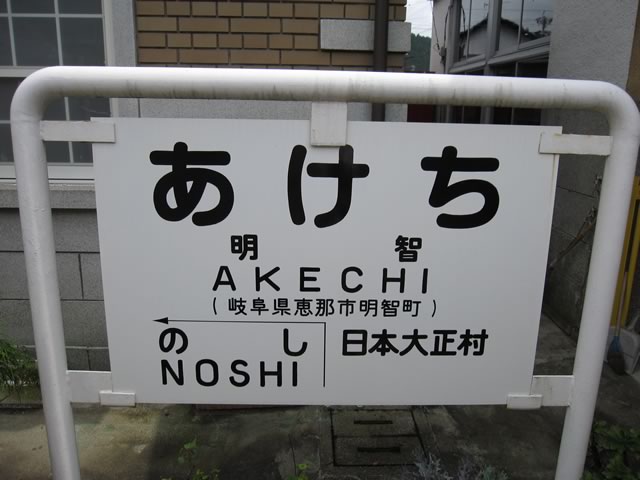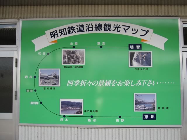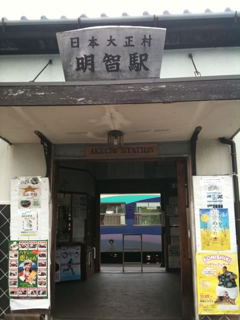 終点明智駅。会社名(明知鉄道)と微妙に字が違うので紛らわしいかも。一応,この近辺は日本大正村として町おこしをしているようです(が,テーマパークというワケでもなく,どこを見てよいのか分かりにくいきらいも)。