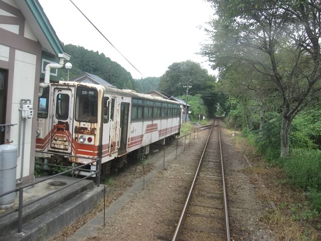 さらに山岡駅には,開業時に使われていたレールバス(アケチ1形)が放置留置されているではないか−。